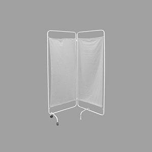 Состоит из двухсекционного каркаса со шторками из хлопчатобумажной ткани. Стальной каркас секции выполнен на основе тонкостенных стальных труб D16 мм и покрыт полимерно-порошковой краской белого цвета. На одной из секций имеется два опорных колеса, что позволяет передвигать ширму в нужном направлении. Между собой секции соединяются шарнирами, в результате чего ширма принимает нужную конфигурацию.